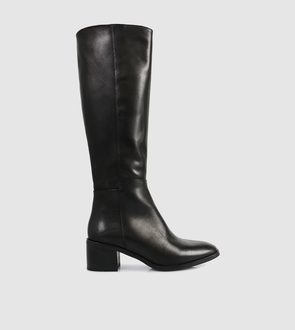 The Armonia Knee-high Boots by Sempre Di embody timeless elegance with a sleek, streamlined silhouette. Crafted from premium leather, these boots feature a softly rounded toe, smooth finish, and a mid-height block heel that offers both style and comfort. Designed to hug the calf for a flattering fit, they make a versatile addition to both day and evening ensembles.