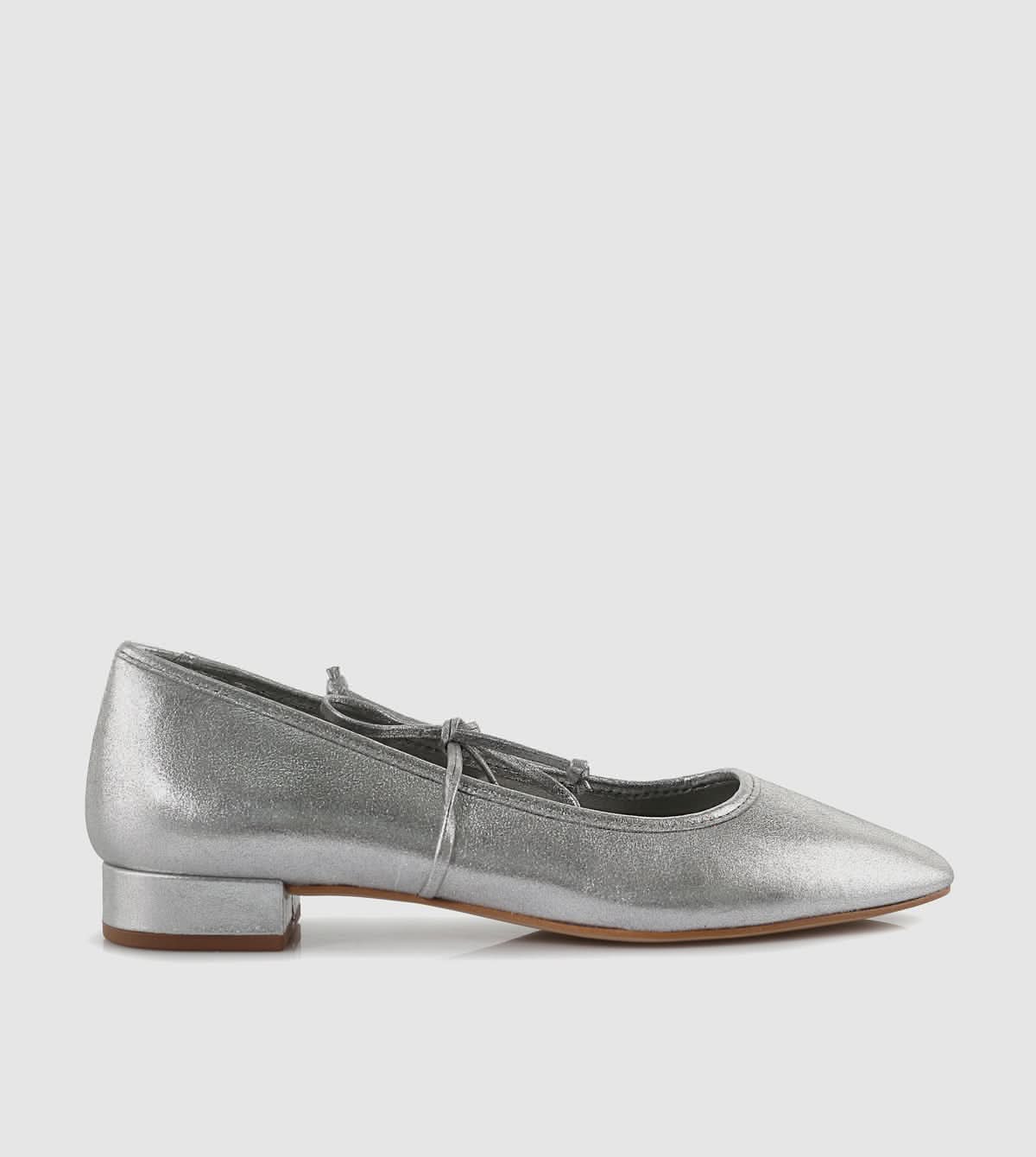 Elevate your everyday look with the elegant Bethany Ballerinas by Sempre Di. These flats feature a sleek silver finish and a delicate lace-up detail for a timeless yet chic appearance. Designed with both comfort and style in mind, they provide a soft cushioned interior and a low, stable heel—perfect for all-day wear. Whether paired with casual or formal outfits, these flats are a versatile addition to your wardrobe.