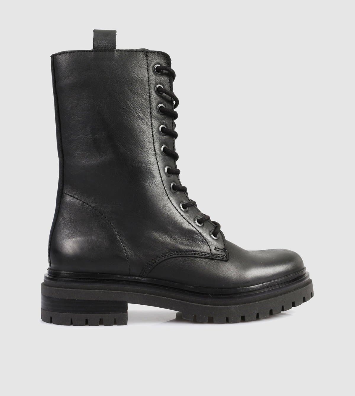 Crafted from smooth leather, the Joliot Ankle Boots by S by Sempre di are secured with laces up to mid calf height and set on a chunky tread sole.  They feature an inner zip, black cotton laces and gunmetal eyelets.  Wear yours to anchor lightwieght dresses layered with relaxed knits.