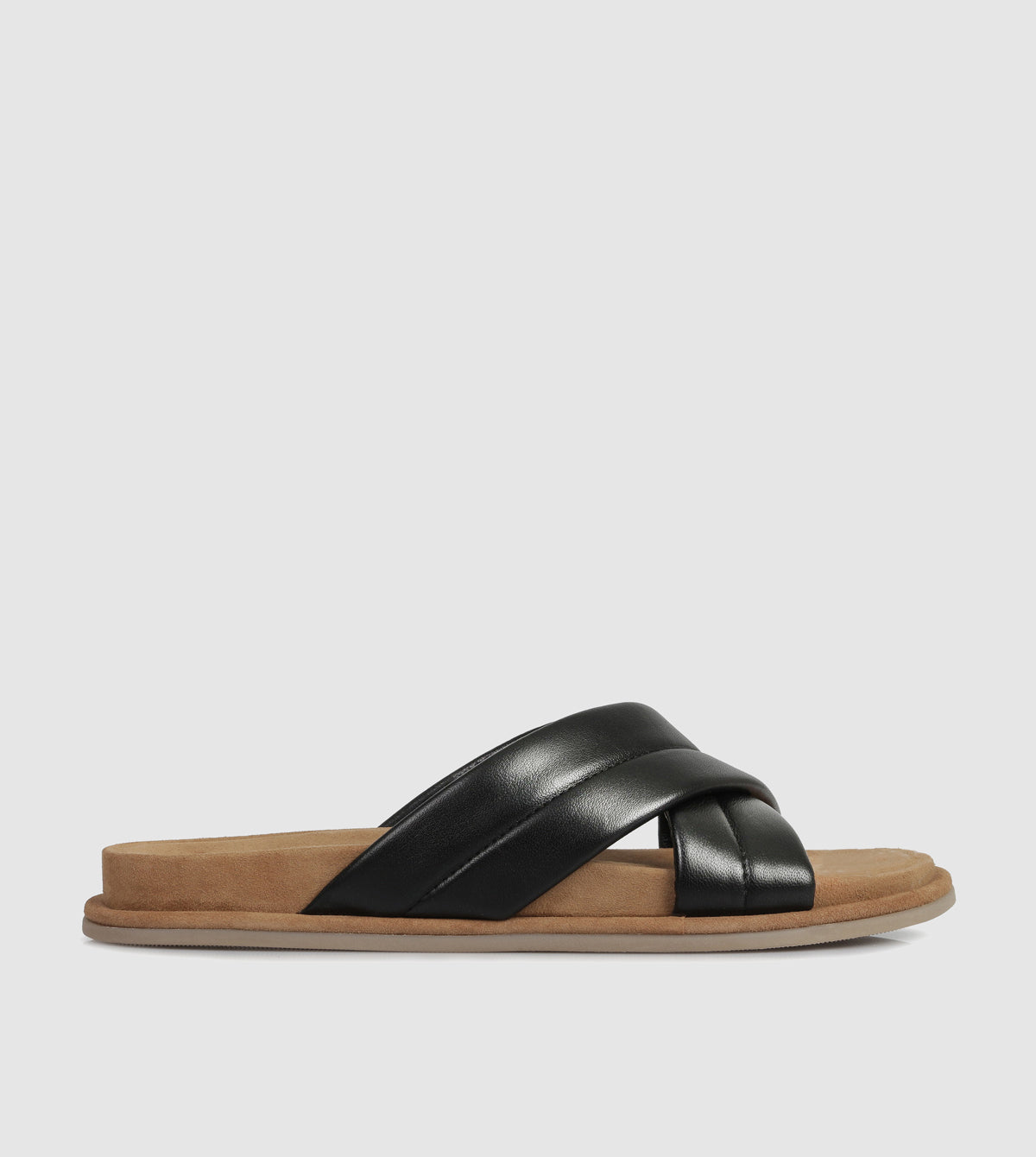 ā Smooth leather upper with crossover strap design