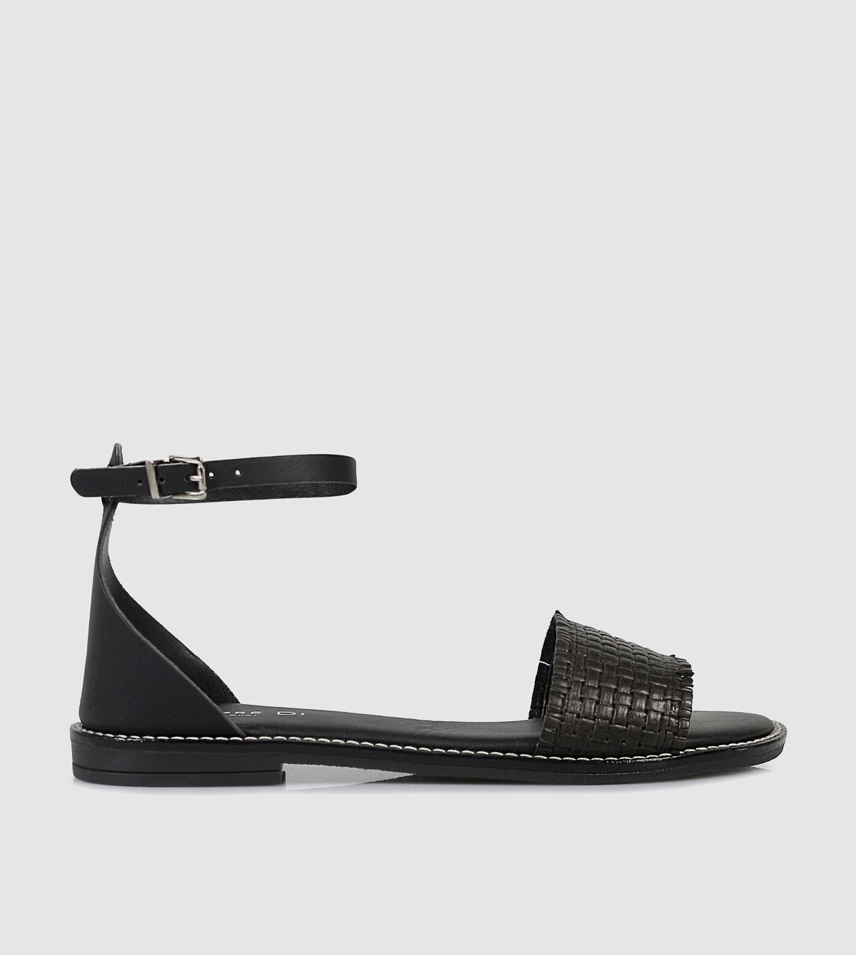- Flat sole with contrast stitching detail