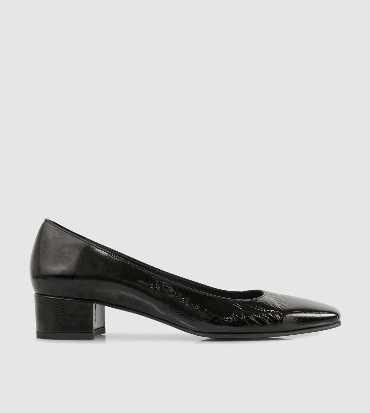 The Daija Court Shoes by Sempre Di combine classic elegance with everyday comfort. Crafted from high-shine patent leather, these shoes feature a softly pointed toe and a low block heel for a timeless silhouette. Subtle stitching details enhance the refined design, making them perfect for workwear or special occasions.