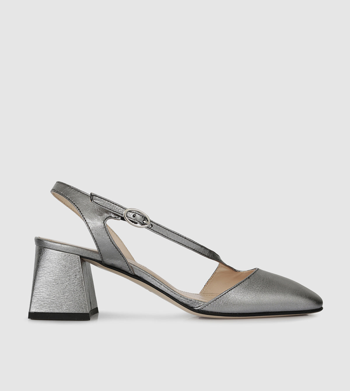 Revamp your wardrobe with cool Avon Slingbacks by Sempre di. These retro block heel sling backs from Italy showcase premium metallic leather or sleek black calf. The thin cross over strap design adds a touch of chic to any outfit.