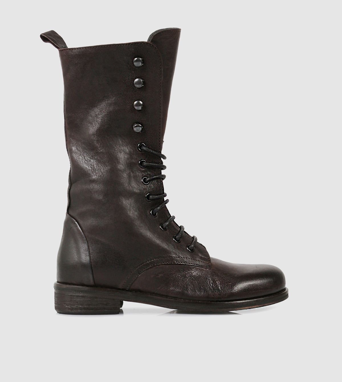 The Marva Mid Boots by Sempre Di blend a rebellious aesthetic with refined Italian artistry. Crafted from premium leather, these mid-calf boots feature a distinctive lace-up front accented with elegant button-style detailing along the shaft. Merging a utilitarian silhouette with a feminine, polished finish, they offer a versatile edge to any ensemble. Complete with a practical side zipper for effortless wear, these boots are an essential addition to a sophisticated, modern wardrobe.