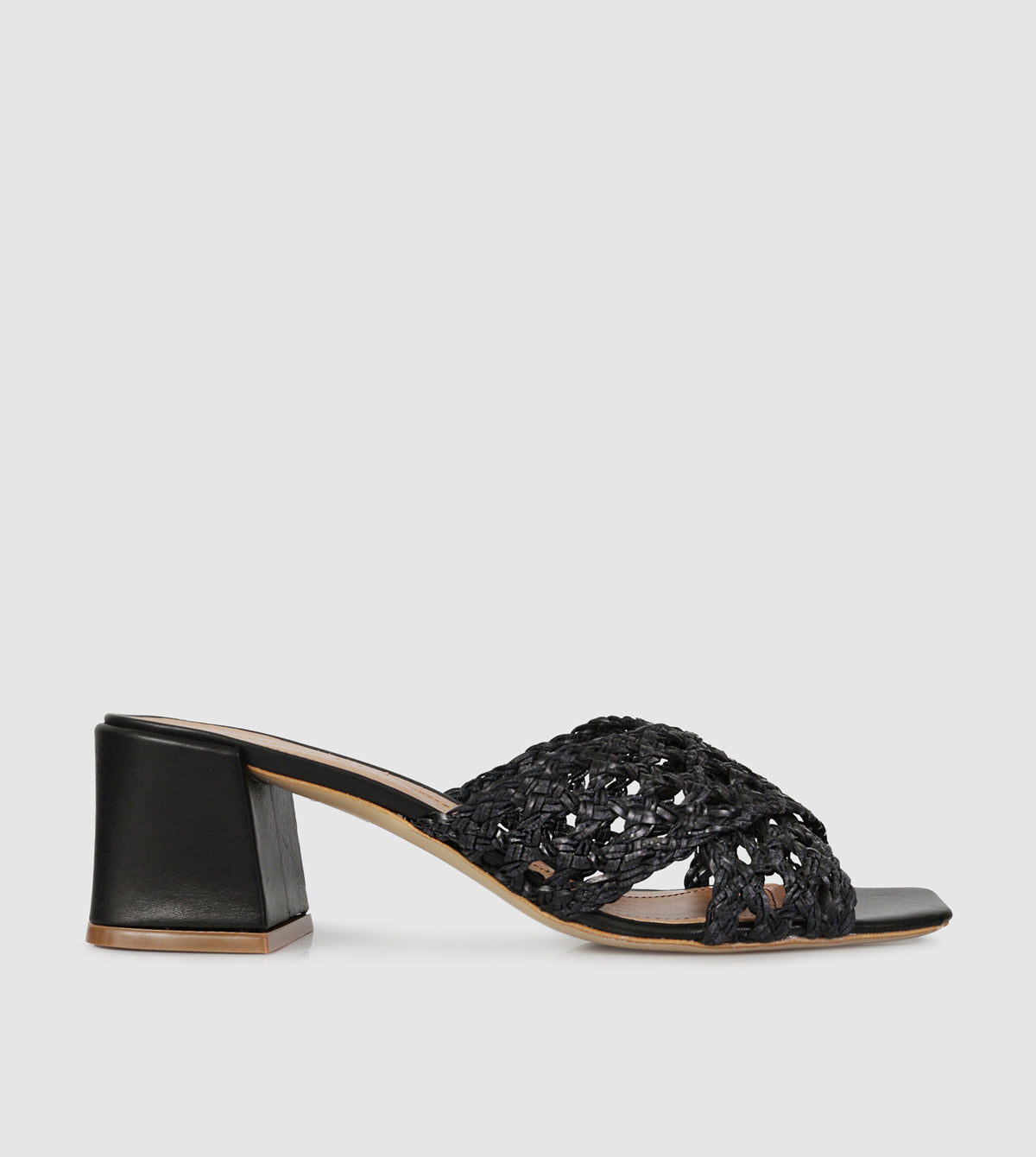 Keep your feet cool and stylish this summer with Reliana Mules by Sempre di. Designed in Italy, these slides feature a trendy cross-over design and an open basket weave pattern. The cool block heel adds a touch of sophistication to any summer outfit. A must-have addition to your wardrobe.